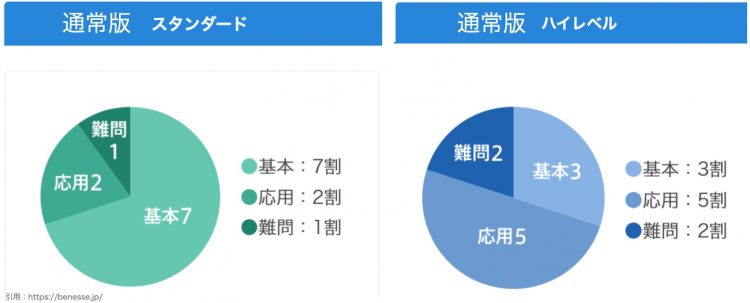 <中高一貫>のスタンダードが、<通常版>のハイレベルと同レベルぐらいですね。