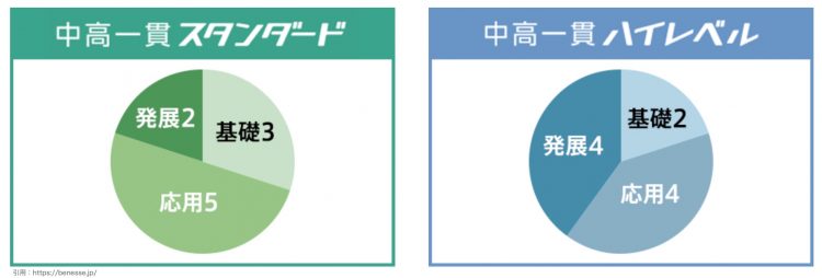 進研ゼミ中学講座の<中高一貫>は、通常版よりもレベルが高い。